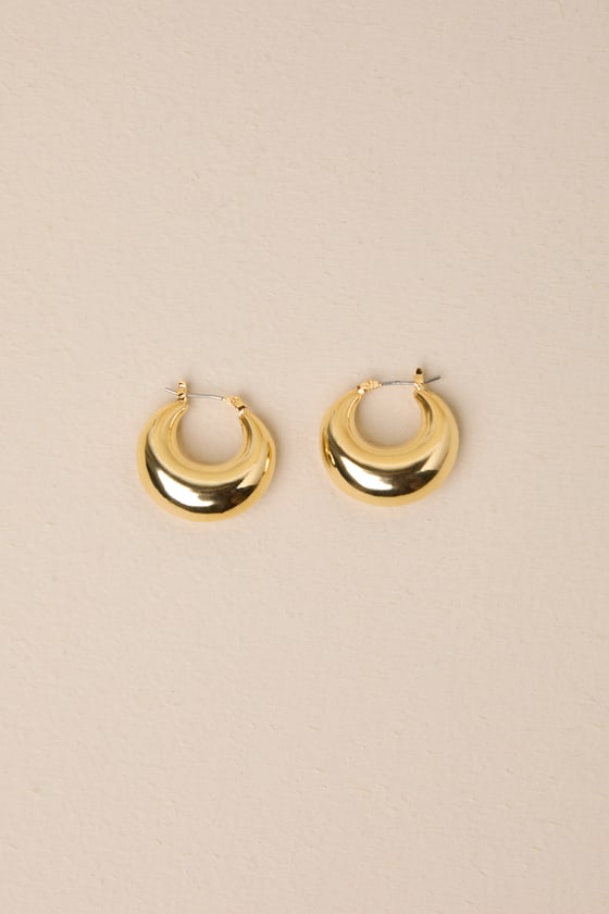 The options for styling the Lulus Timeless Darling Gold Puffy Hoop Earrings are practically endless! Shiny, gold-toned metal shapes these essential earrings that have a rounded, puffy silhouette and a smooth surface with a chic faceted edge, all for a finishing touch you'll find yourself reaching for again and again!